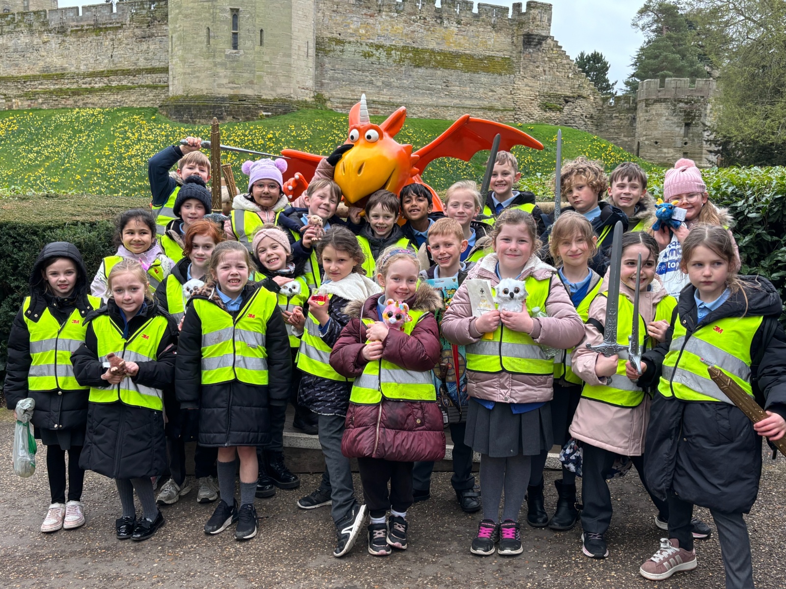 Year 3’s trip to Warwick Castle was an unforgettable adventure, packed with excitement and hands-on learning at every turn. From the moment the children arrived, they were instantly transported back in time to the mediaeval world of knights and castles. The day began with thrilling workshops focused on the art of attack and defence, where the children eagerly learnt about the strategies and weapons used to protect and conquer a castle. They then marched proudly around the castle grounds, exploring the impressive outer walls and feeling like true soldiers. In the castle’s armoury, they got up close to suits of armour and weapons, imagining what it would have been like to prepare for battle. A fascinating tour of the castle followed, where the children ventured underground to discover the castle's hidden passages, and climbed the battlements for breathtaking views of the surrounding countryside. A highlight of the day was the spectacular birds of prey display, where the children marvelled at the soaring eagles and owls as they demonstrated their incredible hunting skills. They also had the chance to visit the largest working trebuchet in the world, watching in awe as the massive contraption was fired. The trip ended with laughter and excitement in the Horrible Histories maze, where the children had fun solving puzzles and discovering gruesome facts about the past. To top it all off, they visited the gift shop to pick up a souvenir to remember the day. So many incredible memories were made, and the children left Warwick Castle with a deeper understanding and appreciation of history, feeling like true adventurers themselves.